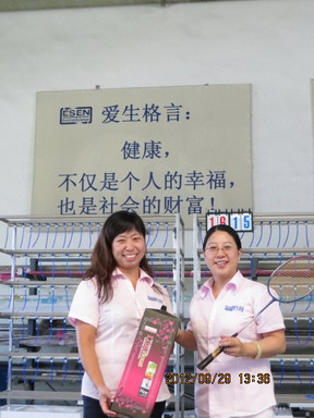 届此,“爱生杯”羽毛球运动会完美结束。战略发展部经理周菁楠获得男单冠军,生产部吴鸿飞获得亚军;战略发展部助理王海超获得女单冠军,库管部杨素环获得亚军;生产部赵海川胡黎明组合和陈国平何欣婷组合分获混双冠亚军。
