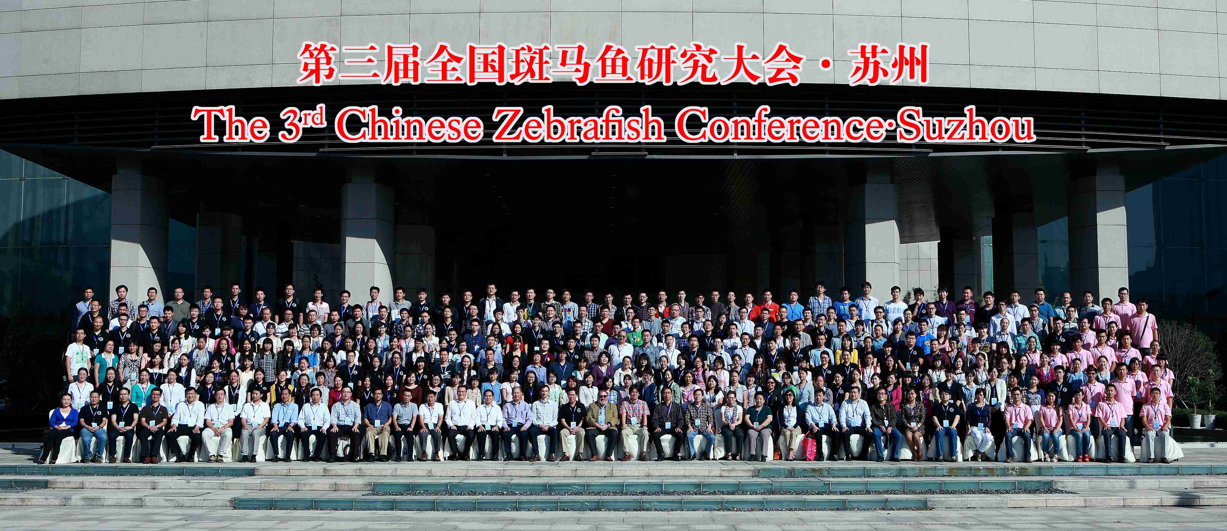 2013年10月11日至14日,第三届全国斑马鱼研究大会在苏州举行,本次大会由全国斑马鱼研究联盟主办,苏州大学生物钟研究中心承办,通过三年的创新和发展,“合作、创新、卓越、游向美好的明天”成为这次大会的主题,孟安明、朱作言、林硕、温子龙、彭金荣、罗凌飞、钟涛,杜久林、莫显明、张博、张建、熊敬维、刘峰、张文清、刘东、孙永华、石德利、王晗、Alex Shier(Harvard University),Susan Mango(Harvard University),Koichi Kawakami(NIG, Japan)等有来自中国大陆、台湾和香港、美国、日本等地的科学家及相关科研人员近500余人参会。大会共设立特邀报告6个、大会报告18个、分会报告36个、墙报121个。与会人员分别从早期发育、器官发育、血液及基因组、进化、心血管发育、神经及行为、信号转导、疾病与基因调控等方面研讨了国内斑马鱼研究领域的最新进展。