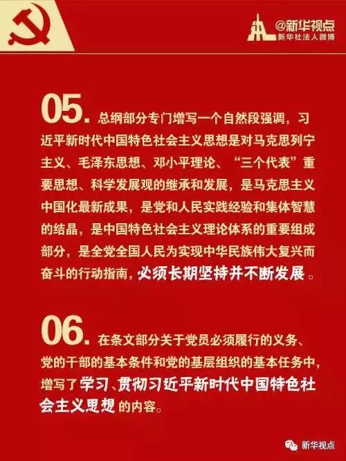 党的十九大通过的党章修正案,共修改107处,其中总纲部分修改58处,条文部分修改49处。重点修改、增加了哪些说法?看图学习!