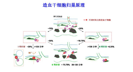 研究人员在国际上率先采用可变色荧光蛋白建立了造血干细胞标记系统,在高分辨率共聚焦荧光显微镜下,建立了造血干细胞长时程活体观察追踪方案,从宏观到微观,生动地呈现了造血干细胞从诞生到归巢的全过程。经过对大规模长时程活体成像的统计分析,发现了造血干细胞归巢的时空规律及“热点区域”,并结合精细成像和三维重构技术,首次揭示了体内造血干细胞归巢微环境的独特微血管结构。