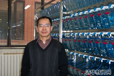 新当选的中国科学院院士、清华大学生物系教授孟安明为他的实验模式动物——斑马鱼专门准备了一个大大的房间,在这个充满了上千个海蓝色鱼缸的房间里,饲养着几万条斑马鱼,这种小鱼最长也不过有人的一个小拇指长,身上有着浅浅的斑斓的花纹。正是以这种小小的鱼类的胚胎发育过程为研究对象,孟安明教授带领科研团队揭示了多个新基因在脊椎动物胚胎的胚层和组织器官形成中的功能和作用机理。